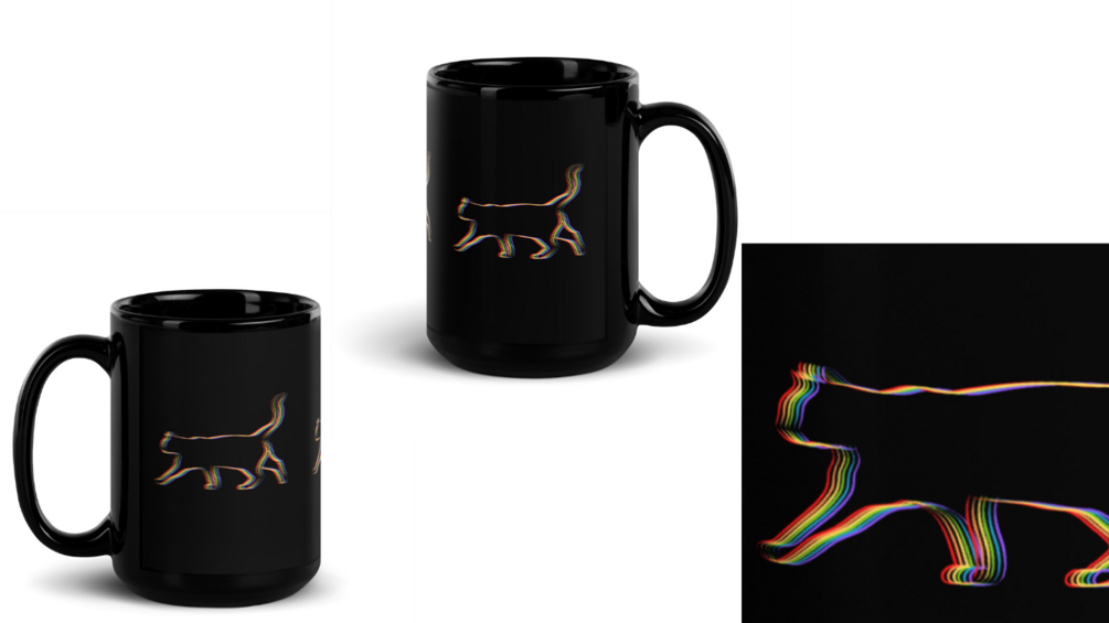 15oz Rainbow Cat Misprint Black Glossy Mug